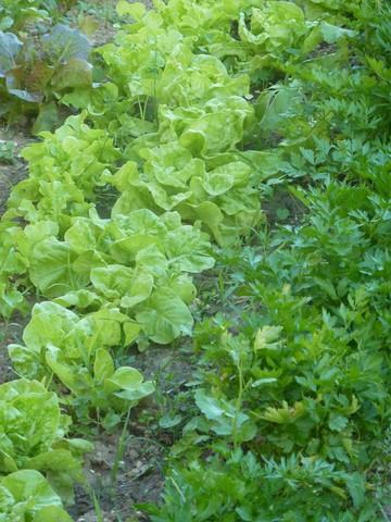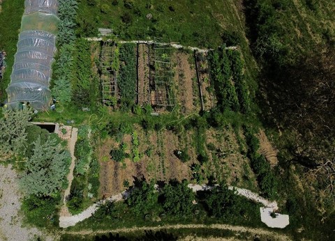 Nous sommes aujourd'hui autonomes en légumes, en acceptant ce que la terre nous donne avec ce qui marche et ce qui ne marche pas. Une serre et une trentaine de buttes de 8 m cultivées en mélange : medicinales, aromatiques, fleurs comestibles, petits fruits, plantes potagères vivaces et annuelles... Nous avons aussi une plantation de 300 aromatiques pour la biodiversité, le plaisir et la fabrication de quelques huiles essentielles et eaux florales.